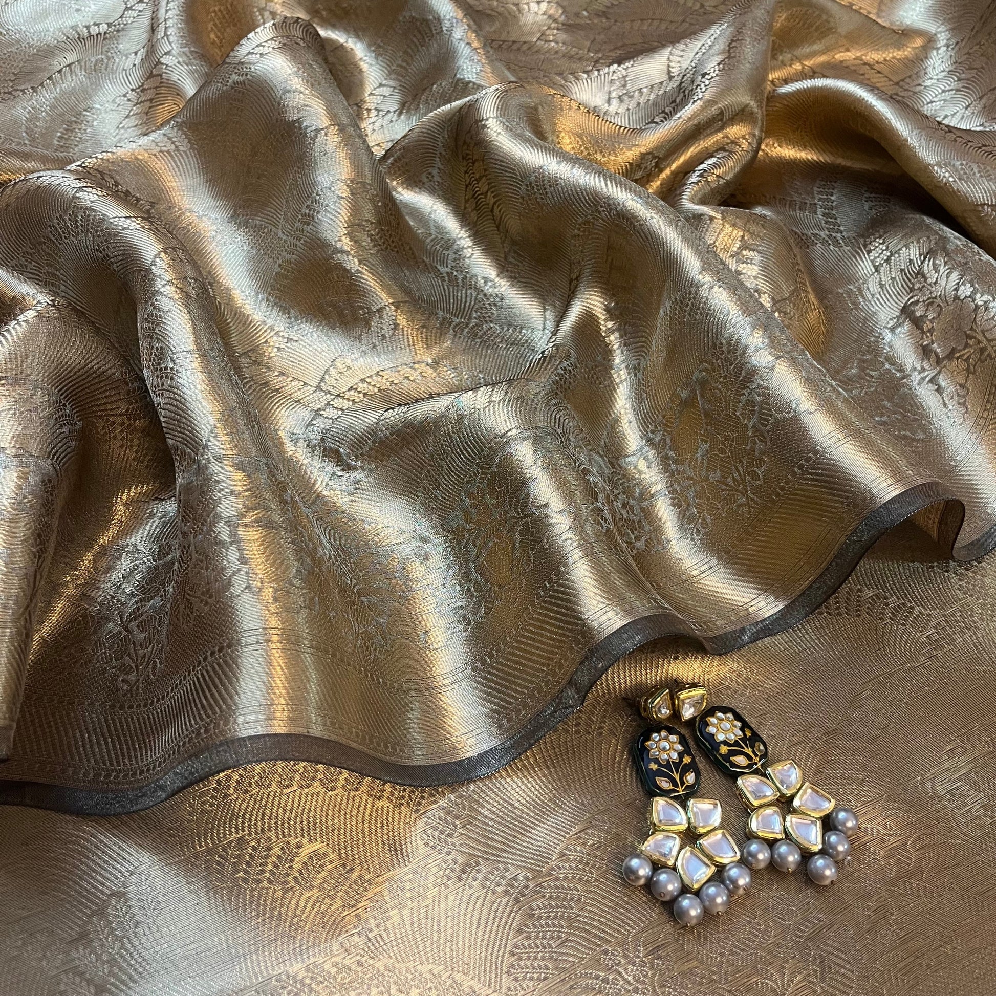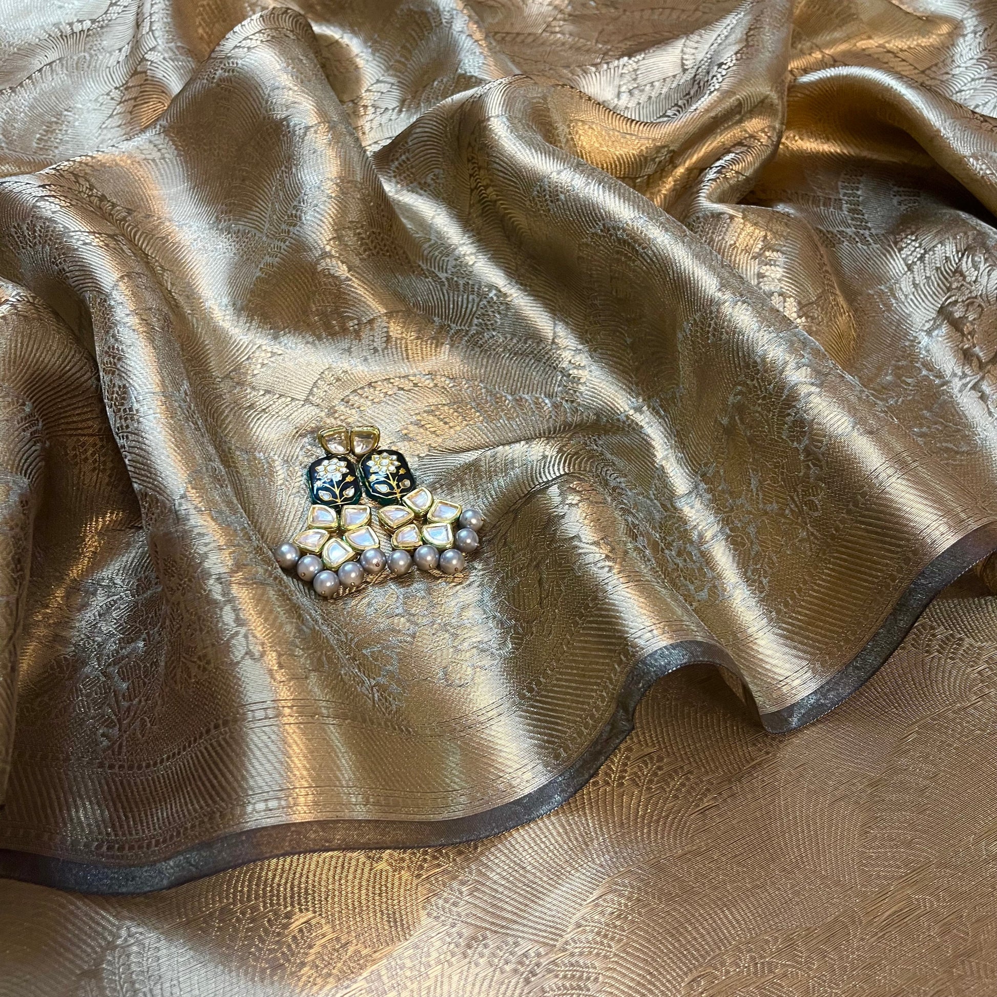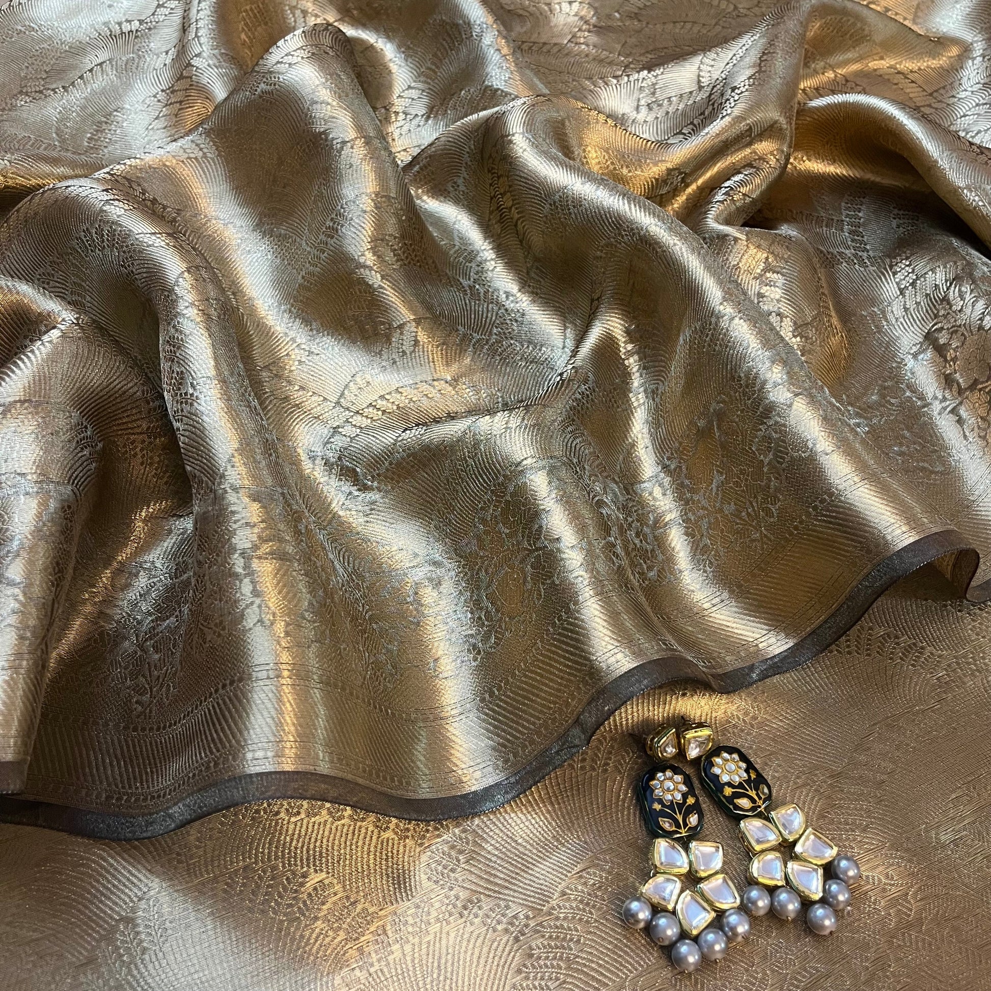 Antique gold Banarasi brocade silk saree with zari pattern all over