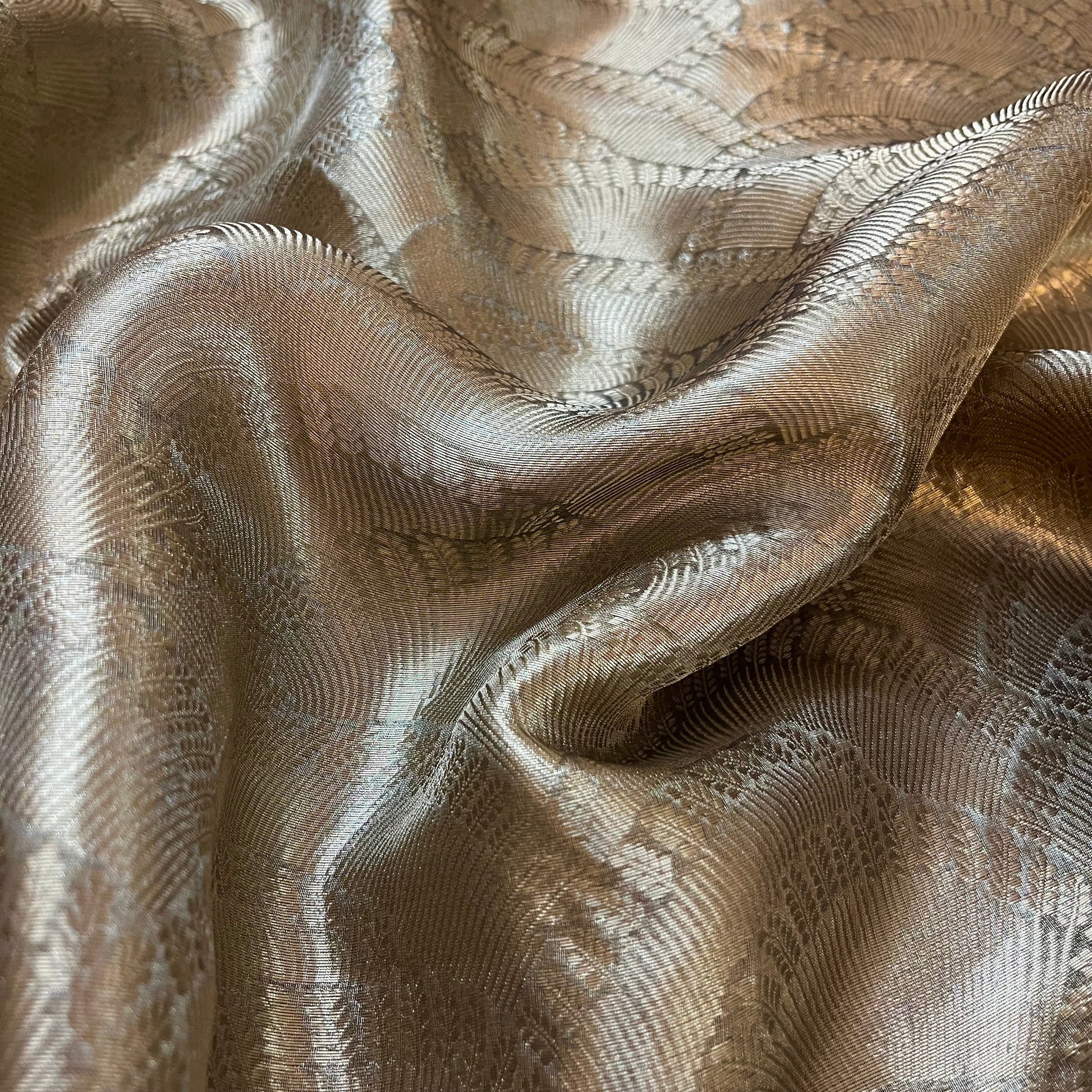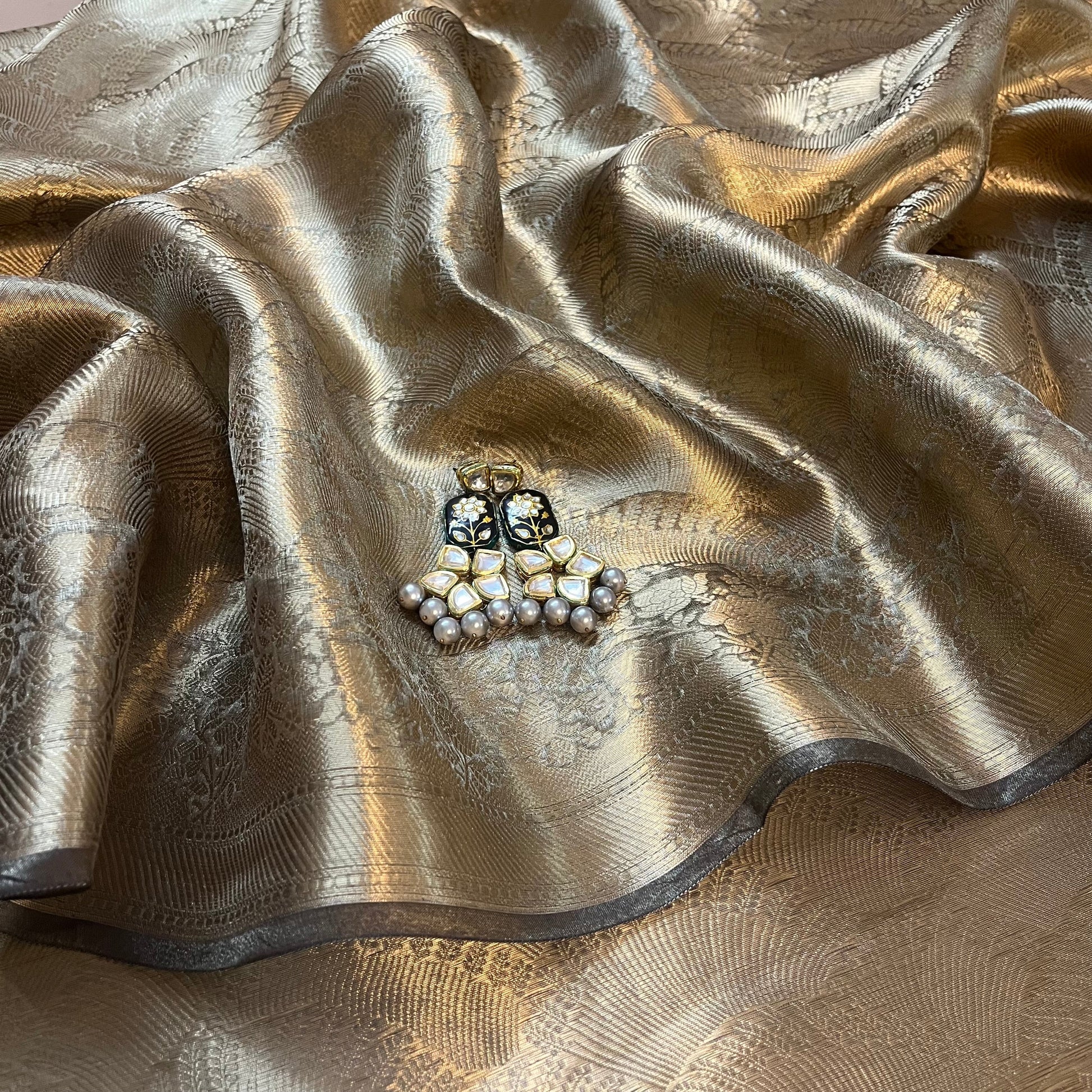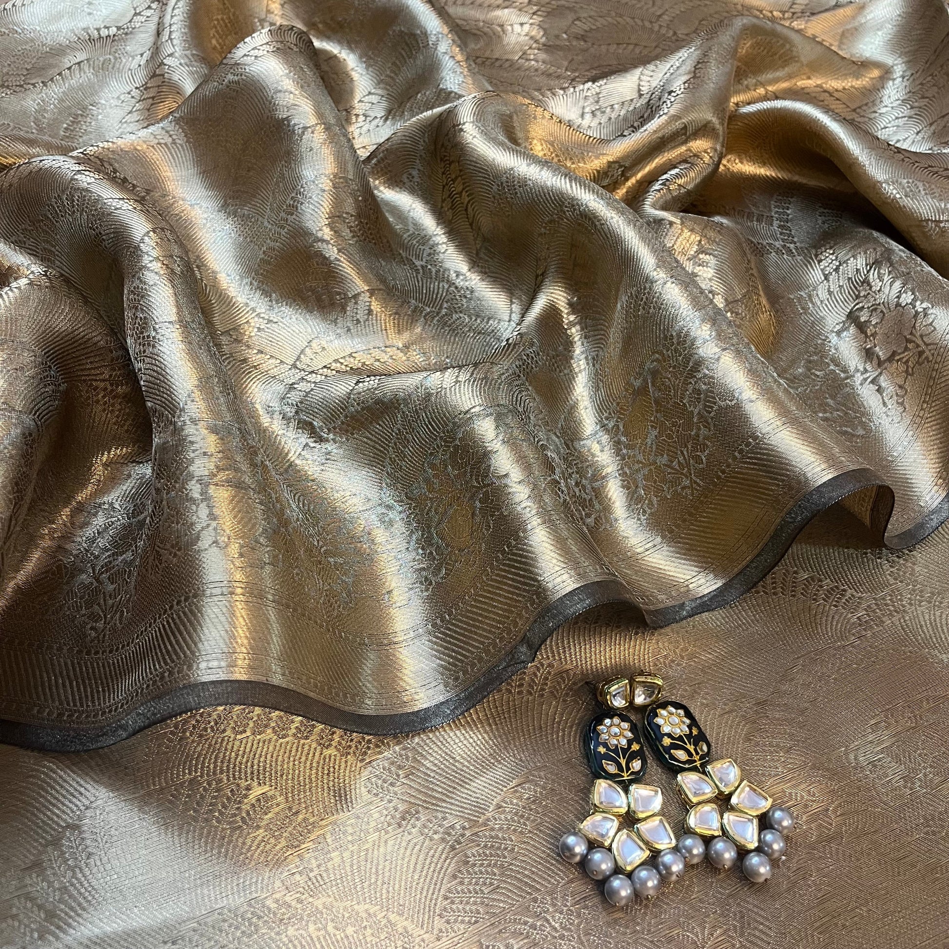 Antique gold Banarasi brocade silk saree with zari pattern all over